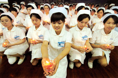33、用温暖的笑容,抚慰伤痛;用轻柔的话语,消去畏惧;用真诚的关怀,扫清阴霾;用细心的体贴,解开心结。国际护士节,祝美丽的白衣天使快乐绵绵不绝!